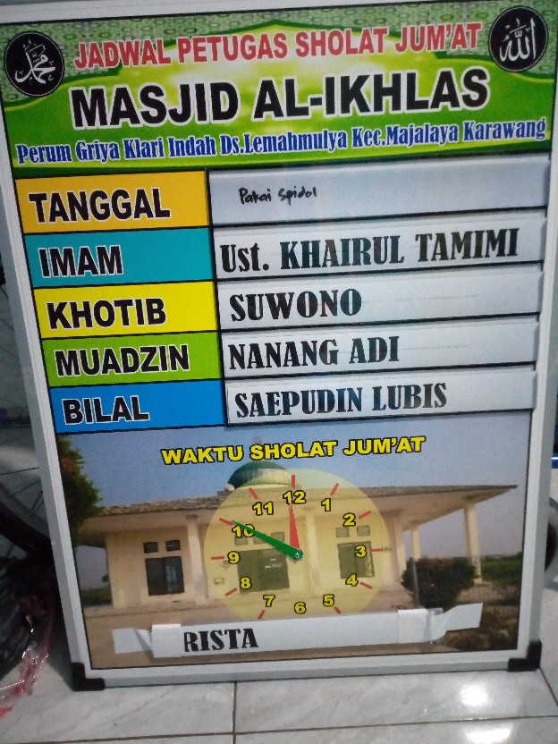Contoh papan jadwal khotib jumat.