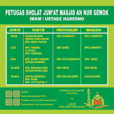 Posting Komentar untuk "Contoh Papan Jadwal Khotib Jumat / Doc Tgl Bln Thn Muadzin Bilal Khotib Imam Jadwal Petugas Imam Khotib Dan Bilal Sholat Jum At Badru Carlosta Academia Edu : Maybe you would like to learn more about one of these?"