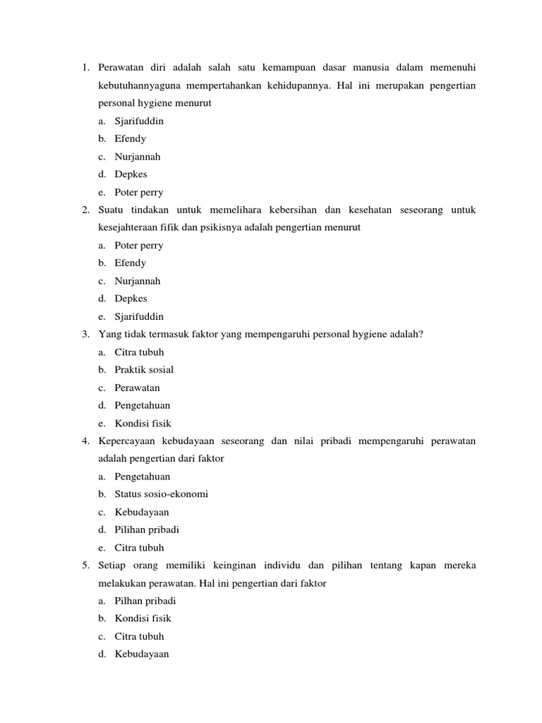 Pertanyaan Tentang Personal Hygiene / Petu 66 Lampiran 1 Kuesioner Penelitian Petunjukpengisian 1 Jawablah Pertanyaan Dibawah Pdf Document - Check spelling or type a new query.