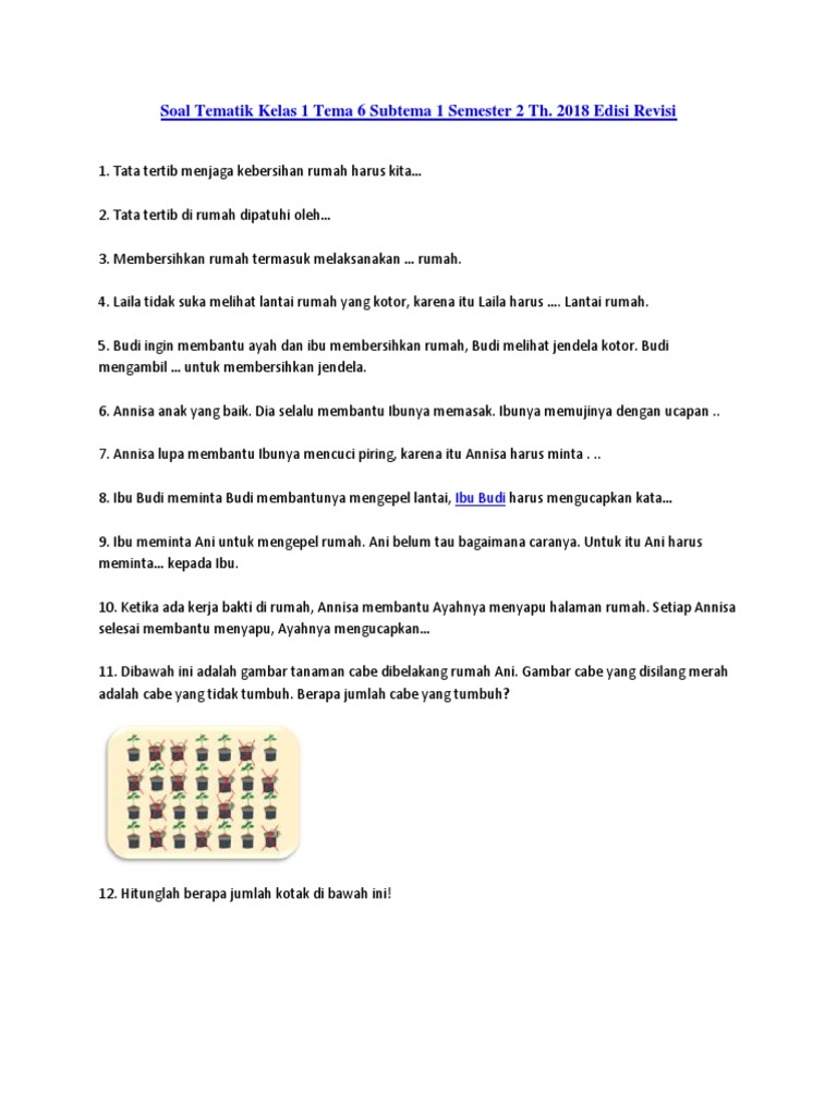Doc Kisi Kisi Penilaian Tema 6 Kelas 1 Sd Mi Lingkungan Bersih Sehat Dan Asri Kd Tema 6 Indikator Jumla H Soal Syelvi Herlinda Academia Edu from 0.academia-photos.com Maybe you would like to learn more about one of these? Petunjuk mengepel lantai kelas 1 sd. Check spelling or type a new query. We did not find results for: