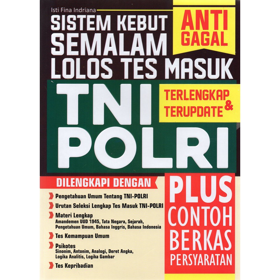 Update info harga dari produk buku. Untuk harga buku resmi psikotes tni polri di gramedia sebesar 148 ribu, karena kebaikan kita bersama buku ini kami jual dengan harga 120 ribu belom termasuk . Buku tes buta warna ishihara . Rincian jelas mengenai harga buku psikotes tni polri di gramedia. Panduan lengkap untuk semua tahap persiapan test.